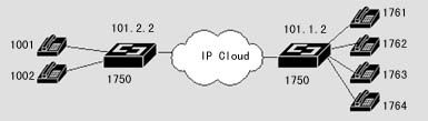 1720也可以通過器語音端口連接到PSTN,通過二次撥號,使得兩地的PSTN用戶可以通過IP網(wǎng)絡互相通話,而話費只是市話的費用。