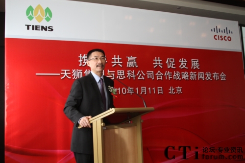 CTI論壇(ctiforum)1月12日消息(記者 張塵):2010年1月11日,北京——“攜手共贏 共促發(fā)展——天獅集團(tuán)與思科公司戰(zhàn)略項(xiàng)目新聞發(fā)布會(huì)”在北京召開,雙方共同宣布,天獅集團(tuán)國際健康產(chǎn)業(yè)園網(wǎng)絡(luò)平臺(tái)成功啟用,并正式達(dá)成合作戰(zhàn)略。天獅集團(tuán)董事長兼總裁李金元先生與思科全球副總裁、思科中國副董事長兼總裁林正剛先生出席新聞發(fā)布會(huì),并進(jìn)行簽約儀式。通過本次強(qiáng)強(qiáng)聯(lián)合,思科面向服務(wù)的網(wǎng)絡(luò)架構(gòu)(SONA)全面部署于天獅集團(tuán)國際健康產(chǎn)業(yè)園,為天獅集團(tuán)業(yè)務(wù)的穩(wěn)定持續(xù)發(fā)展以及信息化水平的進(jìn)一步提升提供了可靠保證,同時(shí)也為雙方未來更深層次的合作打下了堅(jiān)實(shí)的基礎(chǔ)。
