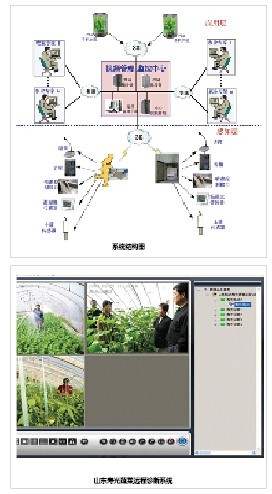 在應(yīng)用案例中,山東壽光蔬菜遠(yuǎn)程診斷系統(tǒng),是基于大唐電信無線EDGE/TD視頻系統(tǒng)平臺(tái)的遠(yuǎn)程農(nóng)業(yè)專家系統(tǒng)。應(yīng)用此系統(tǒng),可對(duì)大棚里的溫度、濕度進(jìn)行采集,并疊加到視頻圖像上,進(jìn)行上傳。農(nóng)業(yè)專家可通過視頻圖像判斷植株生長情況、檢查是否有病蟲害、大棚的溫濕度是否合適,并可以檢測土壤的酸堿度等信息,為農(nóng)戶提供相應(yīng)的指導(dǎo),獲得了良好的社會(huì)效益和經(jīng)濟(jì)效益。