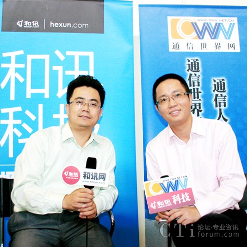 圖:通信世界網(wǎng)總編劉啟程(左)現(xiàn)場訪談東進(jìn)技術(shù)總裁賀建楠(右)