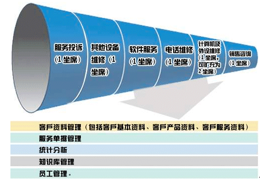 每個模塊大致都有如下功能:客戶資料管理(包括客戶基本資料、客戶產(chǎn)品資料、客戶服務(wù)資料),服務(wù)單據(jù)管理,統(tǒng)計(jì)分析,知識庫管理,員工管理。但每個模塊所需記錄的內(nèi)容、服務(wù)處理流程不盡相同。