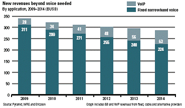 Pyramid Research 公司調(diào)查發(fā)現(xiàn),電信業(yè)務(wù)市場(chǎng)在 2009 年的產(chǎn)值達(dá) 1.4 萬億美元,僅比上一年增加了 1%(與近幾年 10-11% 的年度增長(zhǎng)率相比)。該調(diào)查公司推斷,語音業(yè)務(wù)的盈收額在 2009 年創(chuàng)下了歷史最低點(diǎn),與 2008 年 6% 的漲幅相比,縮減了 3%。