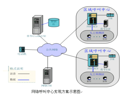 青牛的網(wǎng)絡呼叫中心與傳統(tǒng)的分布式呼叫中心的差異在于,青牛的網(wǎng)絡呼叫中心不僅支持各個分布節(jié)點之間的數(shù)據(jù)、語音同步轉(zhuǎn)移,同時還支持呼叫在各個分布節(jié)點組成的呼叫中心網(wǎng)絡內(nèi)的統(tǒng)一路由、調(diào)度,支持對于呼叫中心節(jié)點網(wǎng)絡作為一個整體的監(jiān)控、統(tǒng)計,支持基于呼叫中心節(jié)點網(wǎng)絡整體的坐席管理(強制簽出、強插、監(jiān)聽),也即是說,客戶可以將物理上分布、邏輯上集中的呼叫中心節(jié)點網(wǎng)絡看作一個巨大的、統(tǒng)一的虛擬呼叫中心。