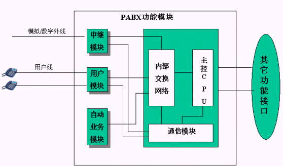 ·輔助功能模塊(如VoIP、自動傳真、語音信箱、電話會議、郵件服務(wù)器、Web服務(wù)器等)和開發(fā)接口等