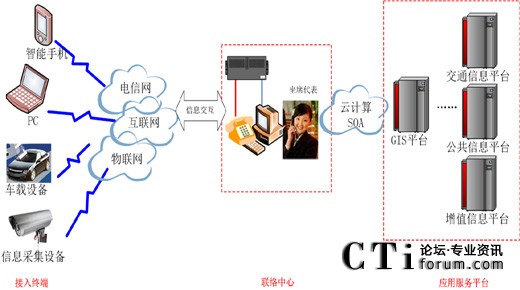 聯(lián)絡中心:可通過電信網(wǎng)、互聯(lián)網(wǎng)、物聯(lián)網(wǎng)等各種方式同用戶互動,可采用語音、短信、即時消息、視頻等各種媒體形式。聯(lián)絡中心可接受各種信息、用戶需求提供相應服務,通過云計算、SOA技術與后臺各種應用系統(tǒng)互聯(lián),可隨時獲取用戶所需服務及信息并推送到終端。