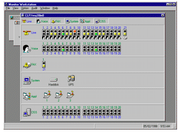 VoiceMaster的Monitor Workstation是一個(gè)為提供即時(shí)系統(tǒng)功能和動(dòng)態(tài)信息而設(shè)計(jì)的通用工具程序。監(jiān)控工作站(Monitor Workstation)顯示系統(tǒng)組件和系統(tǒng)操作特性、通訊線路、主控計(jì)算機(jī)的連接情況、不間斷電源(UPS)及磁盤容量等各自實(shí)時(shí)狀態(tài)的圖形簡(jiǎn)報(bào)。當(dāng)有問題或出錯(cuò)時(shí)產(chǎn)生報(bào)警及警告信息來(lái)通知系統(tǒng)管理員。