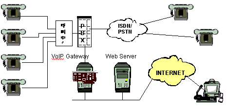 這種解決方案不需對系統(tǒng)做大的變化就可以實現(xiàn),F(xiàn)有的環(huán)境不需要進行改變,并且可以保留原樣。只需簡單地將DIVA SERVER VoIP 網(wǎng)關服務器放在PBX后面就可以建立同因 特網(wǎng)的連接。