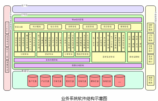電視購物呼叫中心系統(tǒng)包括客戶管理模塊、會(huì)員管理模塊、通話記錄、CALL-BACK單、訂單管理、訂單分檢、物流模塊、財(cái)務(wù)模塊、計(jì)費(fèi)管理模塊、媒體模塊、投訴模塊、FAQ模塊、產(chǎn)品管理模塊、庫存管理模塊、綜合查詢模塊、排班管理、在線培訓(xùn)、電子公告板、事件跟蹤管理模塊、統(tǒng)計(jì)模塊、權(quán)限管理模塊和參數(shù)管理模塊。