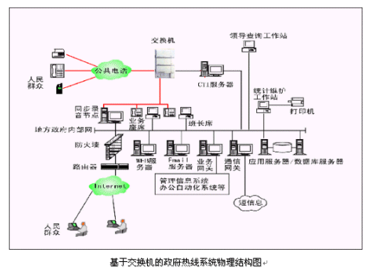 市民利用電話撥打某一特服號(hào)碼(如12345)進(jìn)入政府熱線系統(tǒng),12345政府熱線系統(tǒng)依托地方政府各類業(yè)務(wù)技術(shù)支持系統(tǒng)和網(wǎng)絡(luò)系統(tǒng),通過人工受理或自動(dòng)語音服務(wù)等方式全天24小時(shí)不間斷地為人民群眾提供各種服務(wù);形成了對(duì)外服務(wù)于百姓的無形窗口,對(duì)內(nèi)管理、分析、決策系統(tǒng)相結(jié)合的呼叫中心。