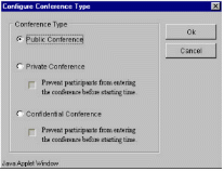 TeleConference系統(tǒng)內(nèi)的任一個(gè)分機(jī),都可以利用瀏覽器(Internet Browser)來(lái)預(yù)約會(huì)議時(shí)間,而參加會(huì)議的人可以在會(huì)議開(kāi)始時(shí),自動(dòng)打電話(huà)進(jìn)系統(tǒng)參加會(huì)議就像加入“聊天室“一樣簡(jiǎn)單。