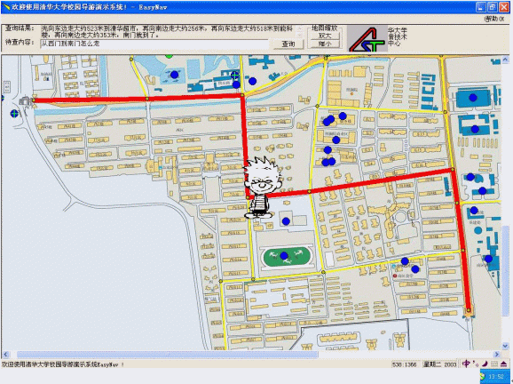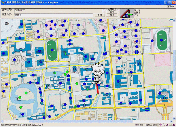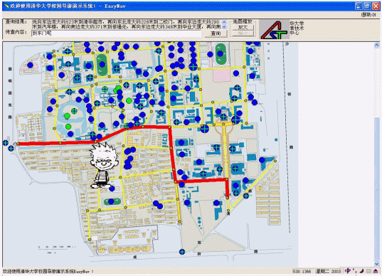 我們專門(mén)為清華大學(xué)開(kāi)發(fā)了"清華大學(xué)校園導(dǎo)游系統(tǒng)",基于清華大學(xué)電子地圖,應(yīng)用中文智能自然語(yǔ)言理解技術(shù),為參觀和訪問(wèn)清華大學(xué)的朋友提供多功能的信息查詢。用戶可在查詢欄中輸入所關(guān)心的內(nèi)容,就能很容易地查詢到清華大學(xué)內(nèi)包括位置、建筑、景點(diǎn)、路線、距離、走路或者騎車(chē)所需時(shí)間等等不同的信息,簡(jiǎn)單、直觀而實(shí)用。