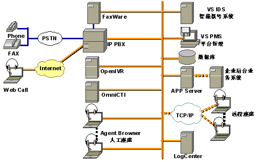 2.座席電話(huà)采用完全的軟電話(huà)技術(shù),利用座席PC機(jī)的聲卡就可以接聽(tīng)電話(huà)或打電話(huà),無(wú)需專(zhuān)門(mén)的語(yǔ)音電話(huà)線,PC機(jī)只要接到企業(yè)的局域網(wǎng)上就可以工作,可以進(jìn)行語(yǔ)音通信,大家節(jié)省了布線工作,座席可以靈活移動(dòng),只要計(jì)算機(jī)網(wǎng)絡(luò)到的地方就可以設(shè)立座席