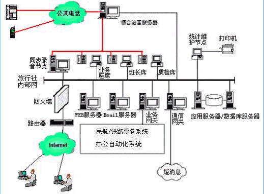 系統(tǒng)網(wǎng)絡可與各網(wǎng)絡系統(tǒng)如訂票、營業(yè)、信息等業(yè)務系統(tǒng)相連,可以通過訪問不同的業(yè)務數(shù)據(jù)庫,實現(xiàn)各種業(yè)務的查詢、咨詢、投訴、業(yè)務受理等全能座席功能。