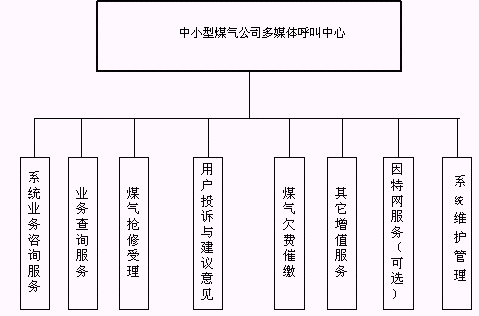 客戶利用電話、手機(jī)等撥打某一特服號(hào)碼(如9xxxx)進(jìn)入中小型煤氣公司多媒體呼叫中心系統(tǒng),本系統(tǒng)依托煤氣公司各類(lèi)業(yè)務(wù)技術(shù)支持系統(tǒng)和網(wǎng)絡(luò)系統(tǒng),通過(guò)人工受理或自動(dòng)語(yǔ)音服務(wù)等方式全天24小時(shí)不間斷地為客戶提供各種服務(wù)。