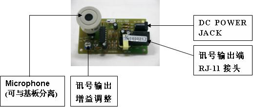 。。產(chǎn)品功能 VCU-100現(xiàn)場(chǎng)集音器可分為兩部份,一是高靈敏度的 MIC,二是前置放大器。應(yīng)用上,一般搭配Video Camera作為現(xiàn)場(chǎng)環(huán)境的集音之用。在前置放大器部份另具有一增益調(diào)整VR,可依現(xiàn)場(chǎng)實(shí)際集音的情況調(diào)整輸出信號(hào)大小,以取得最佳的錄音效果。