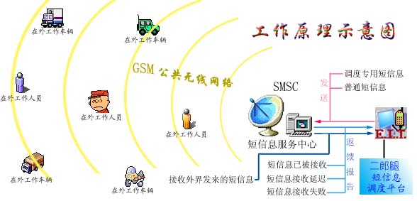 二郎腿短信息調(diào)度平臺(tái)是利用目前社會(huì)上大眾普遍擁有手機(jī)的現(xiàn)成資源,通過(guò)移動(dòng)通訊公司提供的短信息服務(wù)功能作為通信信道,直接對(duì)手機(jī)進(jìn)行低層操作控制,以“收發(fā)短信息”的方式來(lái)實(shí)現(xiàn)信息的傳遞。(通信資費(fèi)標(biāo)準(zhǔn) 與在手機(jī)上收發(fā)短信相同。)調(diào)度平臺(tái)還對(duì)每條發(fā)出的信息 的接收狀態(tài)進(jìn)行跟蹤,確保信息能被安全 、準(zhǔn)確的接收!罢{(diào)度專用短信息”遵循專為各種調(diào)度工作而設(shè)計(jì)的《調(diào)度協(xié)議》,遵循該協(xié)議能最大限度避免由于“短信息服務(wù)中心”的失誤,而導(dǎo)致短信 息丟失的情況。調(diào)度專用短信息對(duì)“接收設(shè)備”無(wú)特殊要求,任何支持“接收中文短信息”的手機(jī)都能實(shí)現(xiàn)。