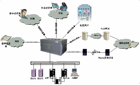 Access Modem等;多種信令:R1,R2,E&M,TUP,ISUP,ANSI,ISDN等;高集成度:模塊化設(shè)計,優(yōu)化了結(jié)構(gòu),系統(tǒng)小巧靈活。