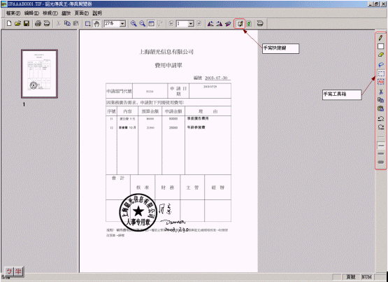 InfoFaxer 超級(jí)功能──數(shù)位手寫傳真 2003-08-01