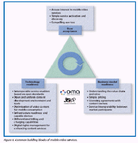 移動視頻服務(wù)會成為其它已制定的多媒體應(yīng)用程序的一個補(bǔ)充。例如,電視并未因網(wǎng)絡(luò)的出現(xiàn)而消逝,同樣的,其它數(shù)字化或傳統(tǒng)的移動傳輸應(yīng)用也不會因為移動視頻的出現(xiàn)而消失。主要概況中略述了移動視頻的好處。下面的文章則著眼于講述移動視頻服務(wù)的普遍發(fā)展障礙,基于大規(guī)模市場的三個關(guān)鍵標(biāo)準(zhǔn)分別是:技術(shù)預(yù)備程度、商業(yè)模式預(yù)備程度和用戶接受程度。主要的觀點將做更細(xì)致的介紹。