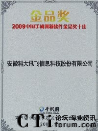 科大訊飛獲“2009中國手機(jī)創(chuàng)新軟件金品獎十佳”企業(yè)獎