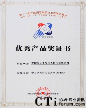 科大訊飛獲評“中國手機創(chuàng)新軟件金品獎十佳” 2009-11-19