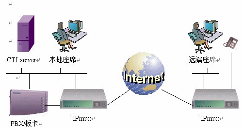 針對(duì)目前呼叫中心部署過程中對(duì)于IP遠(yuǎn)程座席的需求,北京佳訊飛鴻電氣有限責(zé)任公司推出了系列IPmux設(shè)備。 用戶只需將原有座席的電話線插到IPmux設(shè)備上,通過互聯(lián)網(wǎng),即可將該座席延伸到全球任意地點(diǎn)。