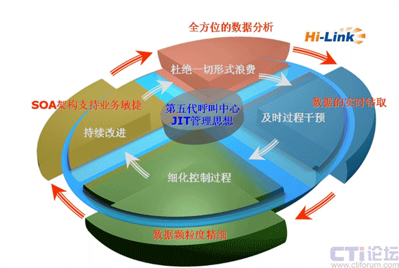 第五代呼叫中心JIT管理思想是商路通公司在總結(jié)大量第五代呼叫中心工程實施案例并和眾多呼叫中心運(yùn)營管理專家一起總結(jié)并提出的針對呼叫中心的管理思想。其具體內(nèi)涵包括杜絕一切形式的浪費(fèi),及時過程干預(yù)和細(xì)化控制過程等要素,最終目的是持續(xù)改進(jìn)企業(yè)的業(yè)務(wù)流程,達(dá)成企業(yè)的服務(wù)及經(jīng)營目標(biāo)。