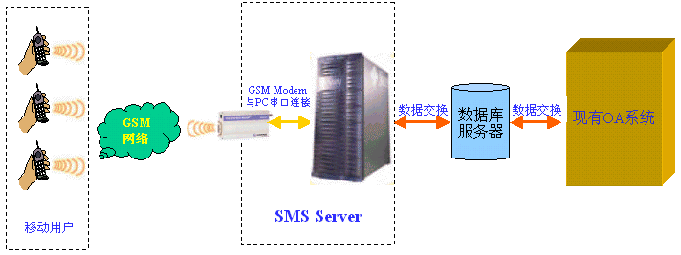 短信收發(fā)服務(wù)器是通過數(shù)據(jù)交換的方式與您的系統(tǒng)進行連接,目前支持數(shù)據(jù)庫的交換方式,可以通過Oralce、MS SQL SERVER 、MS ACCESS等關(guān)系型數(shù)據(jù)庫和現(xiàn)有系統(tǒng)進行數(shù)據(jù)交換。