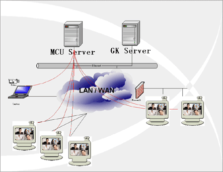 在企業(yè)內(nèi)部局域網(wǎng)與INTERNET連接處,會(huì)設(shè)置FIREWALL防火墻,而IP語(yǔ)音視頻會(huì)議采用的ITU H.323協(xié)議本身不具備穿越防火墻的特性,因此需要防火墻穿越軟件。