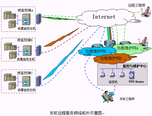 以東軟IT HELPDESK作為接入平臺(tái),結(jié)合基于VPN的遠(yuǎn)程監(jiān)控、遠(yuǎn)程維護(hù)技術(shù),遵照ITIL流程,為客戶提供及時(shí)、優(yōu)質(zhì)的服務(wù),達(dá)到降低服務(wù)成本、提高服務(wù)效率、改善客戶滿意度的目的。