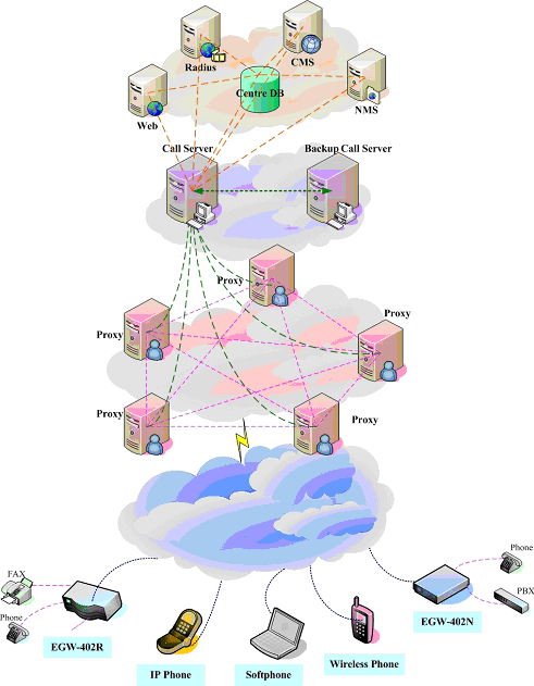 無論大型企業(yè)用戶(通過PBX接入網(wǎng)關(guān)設(shè)備)、小型企業(yè)用戶(使用網(wǎng)關(guān)設(shè)備)還是其它使用單口網(wǎng)關(guān)或IP Phone的用戶,都可以通過各種接入方式接入到ECM3.0網(wǎng)絡(luò)中,并通過PROXY及MEDIA