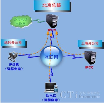 IPCC系統(tǒng)采用全分布式結(jié)構(gòu),可以實現(xiàn)多點的、虛擬統(tǒng)一的客戶服務(wù)中心,座席人員不必拘泥于地理位置,在有網(wǎng)絡(luò)環(huán)境下隨時隨地可以接入呼叫中心為客戶提供服務(wù),實現(xiàn)了真正意義上的移動辦公。
