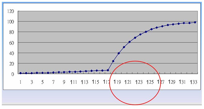 這個(gè)呼叫中心從一只貓沒有,一直增加到117人之前,服務(wù)水平幾乎連一動(dòng)也不動(dòng),但只要人數(shù)增加到118人以后,服務(wù)水平突然猛烈上升,一直到128人才緩慢下來,這時(shí)服務(wù)水平已經(jīng)上升到93,后面的變化就跟117人之前很像,不管再增加多少人,服務(wù)水平的增加都非常有限。