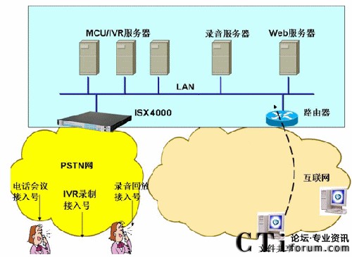 STOP SERVICE)平臺(tái),是當(dāng)前和未來電信運(yùn)營(yíng)商(TCO)及虛擬服務(wù)提供商(SP/CP)增值業(yè)務(wù)規(guī)劃的最佳選擇,特別是中國(guó)重組后的3大運(yùn)營(yíng)商都具備全業(yè)務(wù)運(yùn)營(yíng)資格,正在規(guī)劃前所未有的全業(yè)務(wù)運(yùn)營(yíng)平臺(tái)(融合有線和無線、融合語音和數(shù)據(jù)、融合2G和3G、融和傳統(tǒng)PSTN和NGN網(wǎng)絡(luò)、融合電信網(wǎng)和互聯(lián)網(wǎng)),怎樣的設(shè)備才能問鼎和支撐這樣的全業(yè)務(wù)平臺(tái)?不妨仔細(xì)研究ISX4000的豪華單機(jī)和級(jí)聯(lián)配置:?jiǎn)螜C(jī)支持最大128E1(SS7、PRI)光電接口接入、4096路語音資源、4096路會(huì)議資源、多達(dá)6464路IP(G.711-6464路、G.729-2688路、G.723-2048路)、768路傳真資源、1280路FSK資源(用于E-POS)、1024路視頻資源。通過簡(jiǎn)單易用的管理維護(hù)工具OAM可以對(duì)上述資源任意組合、動(dòng)態(tài)配置、平滑升級(jí)。不僅如此,ISX4000本機(jī)同步配置的DSP采用高性能的回聲消除和音質(zhì)增強(qiáng)(EC