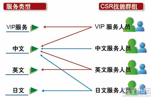 1. 屬于多技能的客服人員能夠服務的話務量隊列也就越廣,如,主要服務「一般英文」的客服人員能夠服務「一般服務英文」與「一般服務中文」的來電。