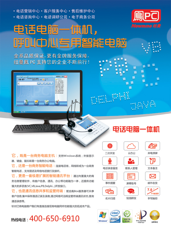 北京紐曼偉業(yè)科技有限公司坐落于中關(guān)村科技園區(qū),一直致力于電話語音系列產(chǎn)品(DRS數(shù)碼錄音系統(tǒng)和CTI聲訊服務(wù)系統(tǒng))的研制與開發(fā),利用國內(nèi)外最新的軟硬件技術(shù)平臺及自主開發(fā)生產(chǎn)電話語音卡的優(yōu)勢,成功地推出了一系列電話語音產(chǎn)品:數(shù)碼錄音系統(tǒng)、企業(yè)客服中心、智能交換機(jī)、語音信箱、110/122接警處理系統(tǒng)以及智能對講系統(tǒng)等,大量應(yīng)用于電力、尋呼、銀行、公安、鐵路和保險(xiǎn)等諸多領(lǐng)域。