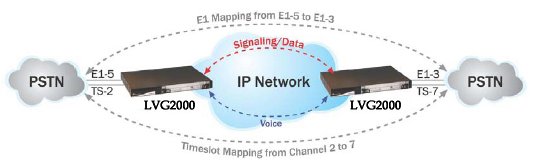 TDM隧道利用LVG 2000內(nèi)部的路由功能(不需要網(wǎng)守或MGC控制)從TDM (1 to 16 E1/T1/J1)或單獨(dú)時(shí)隙接收語(yǔ)音和數(shù)據(jù)流,轉(zhuǎn)換為在IP網(wǎng)絡(luò)上傳輸?shù)臄?shù)據(jù)。