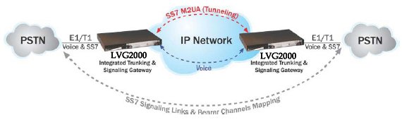 TDM隧道這一特性可以被使用去傳輸除7號(hào)信令連接之外的7號(hào)信令通道,使用LVG 2000支持的SIGTRAN和SS7互通(見(jiàn)圖3)