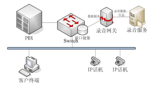 NETLOG VOIP語音記錄系統(tǒng)可以方便靈活的支持任何網絡結構,并可以根據用戶要求指定工作的方式。由于采用端口鏡像技術,如果要直接采用Switch連接,則要求Switch必須支持端口鏡像功能;如果Switch不支持端口鏡像,則將所有要錄音的話機與錄音網關連接在同一個集線器上,錄音網關支持這種工作方式。