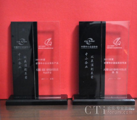作為國內首家SaaS廠商,八百客積極推動云計算在中小企業(yè)中的宣傳與運用。2006年,八百客在國內率先推出管理自動化開發(fā)平臺800APP, 它擴展了按需服務,并實現(xiàn)了客戶可根據(jù)需要自定制應用程序,成為了改變應用程序開發(fā)的一個新途徑。為表彰八百客在中小企業(yè)信息化中做出的杰出貢獻,本次大會特別為八百客頒發(fā)了“2011年度優(yōu)秀中小企業(yè)服務產(chǎn)品大獎”,此外還授予八百客總經(jīng)理李智 “2011年度優(yōu)秀中小企業(yè)服務明星大獎”。