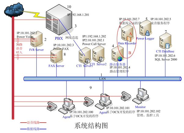 - IVR Server和FAX Server采用高品質(zhì)的工控機(jī),配置和軟件環(huán)境基本一樣。每臺(tái)機(jī)器均有30路語(yǔ)音接入,分別裝有一套Power