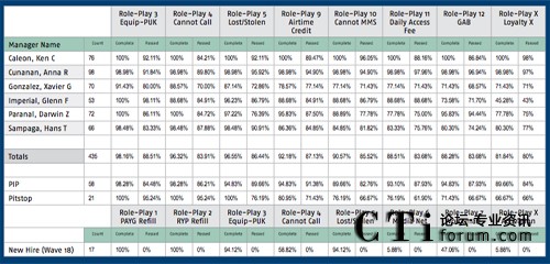 AT&T案例(7):一般來講,新員工的培訓集中在知識、工具和客戶互動技巧等質量因素,不是如何提升效率。主管每天利用工具評估坐席是否使用了培訓中的內(nèi)容。另外針對指標最差的5%員工,按1:6的比例配備最有經(jīng)驗的QA、培訓師和主管進行輔導。次差的10%則不改變班次,而是實施另一項專門設計的培訓計劃。