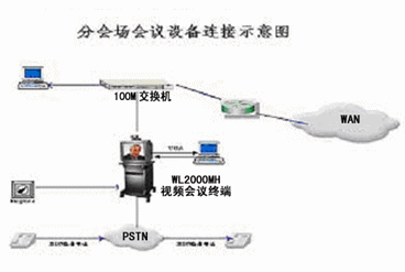在各分會(huì)場(chǎng),提供100M快速交換以太網(wǎng)端口連接分會(huì)場(chǎng)會(huì)議終端WL-2000MH,以上設(shè)備分別通過綜合信息網(wǎng)提供的100M快速交換以太網(wǎng)接入主會(huì)議系統(tǒng)網(wǎng)。另外,在分會(huì)場(chǎng)預(yù)留一條電話備份線路,也可以用音頻撥號(hào)方式撥入,用參加視頻會(huì)議。