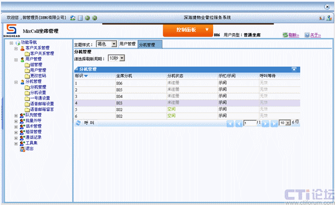 坐席操作界面(如圖):