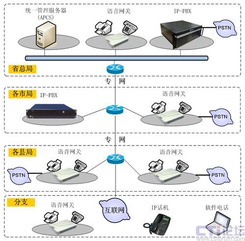 摘要:公司Zed-3(捷思銳科技)公司借助工商系統(tǒng)現(xiàn)有的數(shù)據(jù)專網(wǎng),在省局部署大型IP PBX,負責(zé)省局的分機注冊以及整套系統(tǒng)的路由規(guī)劃,在各市局部署中型IP PBX,負責(zé)市、縣局的分機注冊――充分利用現(xiàn)有資源、降低工作費用,擴展新業(yè)務(wù),推進工商系統(tǒng)通信網(wǎng)絡(luò)的全面提升。