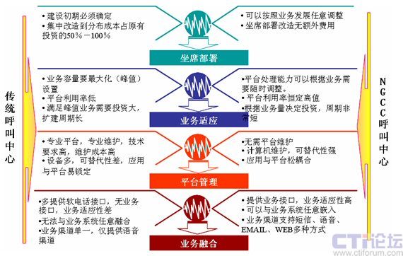 主要功能——   其他功能——   媒體服務(wù)器   NGCC平臺軟件結(jié)構(gòu) 與傳統(tǒng)呼叫中心技術(shù)基本相同    4. 不同類型的呼叫中心平臺比較