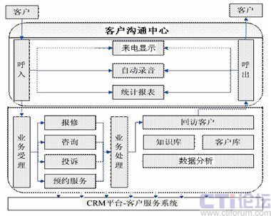 客戶聯(lián)絡中心(Customer CareCenter-ccc),集電話,計算機,通信網(wǎng)絡為一體的信息化綜合服務平臺。用戶可以通過撥打統(tǒng)一的易記的接入號碼接入平臺,由專業(yè)的坐席代表根據(jù)用戶需求借助平臺強大的功能為用戶提供相應服務。呼叫中心也可通過有計劃性的外呼,主動為用戶提供服務。