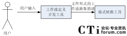 IVR系統(tǒng)的過(guò)程定義工具是一個(gè)可視化的軟件工具,它主要用于定義工作流模型中各個(gè)活動(dòng)之間的關(guān)系[22]。工作流程過(guò)程定義向用戶提供對(duì)實(shí)際業(yè)務(wù)處理過(guò)程分析、建模的手段。其輸入輸出可以用圖3.2表達(dá):