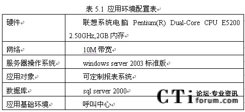 該部分將可定制報表系統(tǒng)應用于呼叫中心,以驗證系統(tǒng)正確性。其設備配置環(huán)境如表5.1所示。