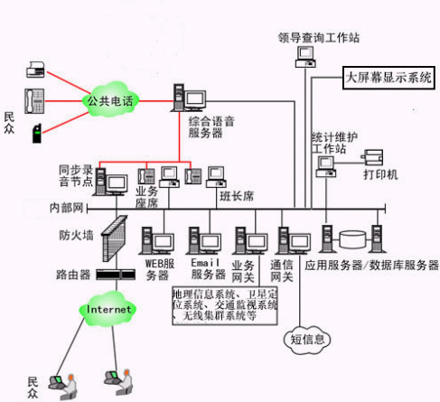 (5)通訊控制接口子系統(tǒng),實現(xiàn)計算機系統(tǒng)與有、無線通訊、警報發(fā)放等系統(tǒng)的連接,計算機系統(tǒng)可對通話進(jìn)行實時錄音,通訊系統(tǒng)也可接收計算機系統(tǒng)的控制而作通信鏈路的自動接通操作,重要預(yù)案的某些指揮信息可自動由計算機內(nèi)預(yù)案庫送出。